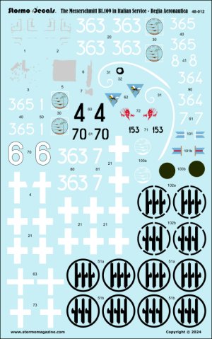 Includes decals for 5 Italian WWII Aces including the highest scoring Italian Ace