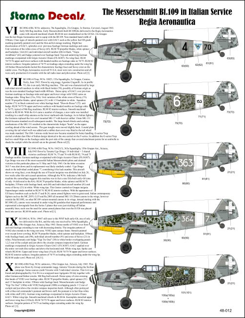 Includes decals for five (5) Italian Bf.109 Aces and six (6) aircraft including