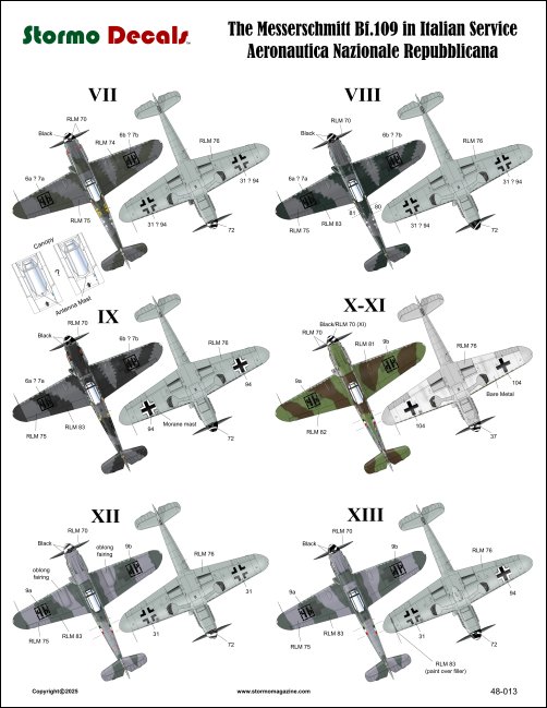 Includes decals for six (6) Italian Aces and seven (7) Macchi C.205V Serie III