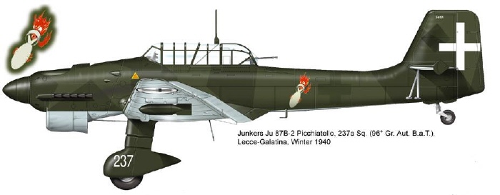 the Regia Aeronautica ordered a number of Ju 87B-2s. Between July and August of 1940, a team of Italian pilots and groundcrew performed a