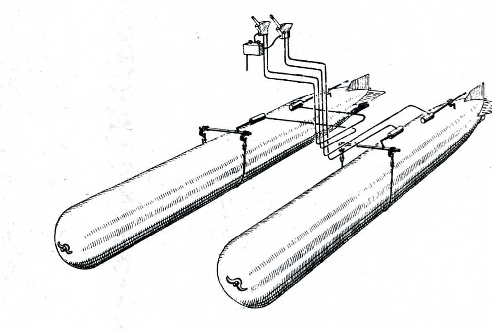 water impact, by a system acted by two small plates. The torpedo had a gyro stabilizer which moved two ailerons; these could have been also of the