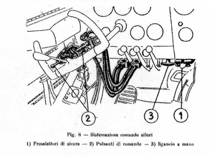 Fig. 22 – The words on the right lever read: PER SGANCIO SILURO PREMERE FINO IN FONDO (Push to the end to release torpedo).