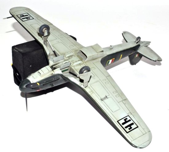 This is the Special Hobby 1/48 Fiat G.55 Sottoserie 0 (Serie I). The SH kit is a nice scale reproduction of this famous fighter, probably the best the Italian industry had produced during WWII. There are a couple of annoying things thought: some parts are really molded on the heavy side and must be scratched, the U/C legs for instance, and the worst, the moving part of the canopy with a poor rendition of its structure. As I intended to do it closed, I protected the front windshield and sand the details of the rear part. Transparency was obtain trough micro mesh, compound and mirror. Then using the Silhouette tool I did draw a new armature, which in turn gives me the correct masks et voilà! On the Sotto serie 0, in front of the radiator there is a plate which receive the empty gun carriage deflectors, this plate was also done with the Silhouette. The exhausts are from Ultracast Me 109 G/K as they are the only one to be of the proper length, those of Quickboost are too small. This plane was taken by the German at the Armistice, received German markings, then they were versed to the Montefusco Squadriglia, and the were incorporated in the 2°Squadriglia 2° Gruppo of the ANR. Through the VOS some of the old German can be seen, and the Italian flag with the 6 yellow fringes typical of the Montefusco/Bonnet planes of origin. I have used Italian Kit prop and spinner and MC 200 wheels as they have the correct dimension. |