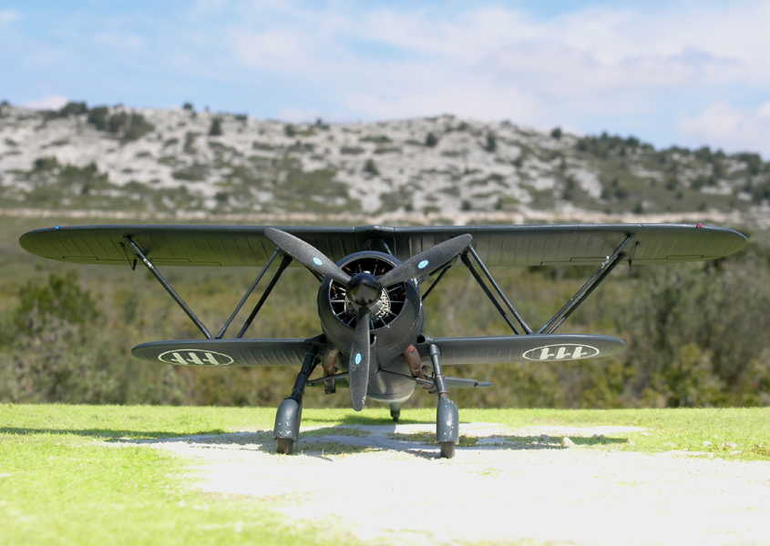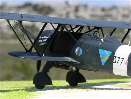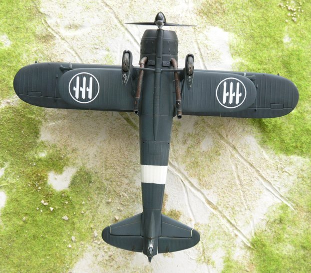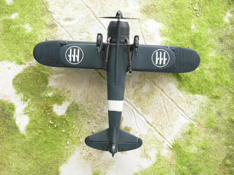 To paint the plane I have reviwed a lot of pictures of the CR.42 CN. I noted that some parts are darker than others, particularly the engine cowling. The photos can be seen that this part was often covered by a tarp, its a possible explanation why this part is darker than other part of the plane. No dust, no solar light it's better for dark paints. I used for the cowling flat black XF 1 of Tamiya, for the other part air brush first a mix of Tamiya's field blue XF-50 (70%) and flat black XF-1 1(30%), in second I airbrush a very thinned part of Field Bleu, in third I airbrushed a 50% thinned mix of field blue XF-50 (70%) and flat black XF-1 1(30%). On control surfaces the mix is 85/15, 90/10 ... highly thinned. For weathering I used pastel powder, highly thinned Tamiya Deck Tan XF-55 especialy on the undersufaces, and a very thin oil paint "Terre d'ombre brûlée". I finish with a flat clear varnish. |