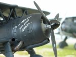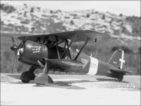 Since the first days of WWII, on 1940 June 10th , some Itlalian cities (Torino, Genova, Milano and Roma) having being raided by the French Armée de l'Air and Aéronavale and the RAF bombers. The Stato Maggiore dell'Aeronautica (Italian Airforce Headquaters) ordered fighter units to form their own night-fighter flights usually equipped with three Fiat CR-42s. On 1941 May 15th the SMA could provide 20 flight equipped with three FIAT CR.42 and two more flights in July based at Tripoli and Bengazi (Lybia). On 1941 October 1 the 171° Gruppo Autonomo CN was created at Gela airfield in Sicily with two Squadriglie, 301a and the 302a Sq . The Gruppo was equipped with 17 FIAT CR.42 CN. This unit was dissolved on 1941 December 18 and 6 of those « Falco » were sent to Palermo. The CR.42 CN (Caccia notturna) was a variant of the standard CR.42 upgraded for night fighting by the addition of instrumentation (artifical horizon), a two-way radio, long flame-damping exhausts and machine-gun flame-dampers and were paint in « black » at the factory. (see Stormo's article about that black colour- Ing. Riccardo Trotta). Some experimetal CR.42s were equiped with lamps and some other CR.42s were converted into CN variants in the field. From Novembrer 1942 two night-fighter units 59° Gruppo and 60° Gruppo were operationnal in Northern Italy for a total force of some 50 CR.42s, one in Central Italy the 167th Gruppo with 10 CR.42s and accounted for another twenty CR.42 CN dispersed in several autonomous flights in Southern Italy, Sicily and Sardinia. The 377° Squadriglia was one of those unit based iat Palermo-Bocadifalco airfield. From March 1942 the 377° Squadriglia based in Palermo was converted to the night interceptor role with « customised» Falco's, Caproni or Reggiane 2000 an 2001 CN. The model is the plane of Italian Ace Tenent Luigi Tochio with the nose art inscription « Io la notte piu non posso dormire » which translates to "I can't sleep at night". Tenente Luigi Torchio 10 December 1917 – 30 January 1944 In February 1943 Luigi Torchio served in the 377a Squadriglia Autonoma. During the night of 21/22 February 1943 he shot down a RAF bomber Wellington over Palermo flying a Fiat CR.42 night fighter. Tenente Luigi Torchio was killed in combat on 30 January 1944. During the war he had been awarded with the Medaglia d'Argento al Valor Militare and the Croce di Guerra al Valor Militare. At the time of his death Torchio was credited with 1 biplane victory and a total of 5 destroyed. |