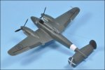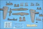 The IMAM Ro-58 was the successor to the smaller twin-engine fighter Ro.57. Bigger and powered by two DB-601s and equipped with not less than 5 x 20mm canons and a 12,7mm dorsal MG this plane would not have an opportunity to fight for its cause before the armistice. Till now there was only a basic model in vacuum but the SEM Models Ro.58 comes as a welcome addition for RA fans. Typical resin construction with scratch built ventral 2 x 20mm canon pod and other mods. |