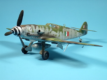 The Bf 109K4 represented the final development of the original airplane, sometimes referred to as the Me 109. The Bf 109K4 was an extremely fast and agile aircraft and was a formidable threat to the best allied fighters and bombers. In Italian use the Bf 109 is usually known for its extensive use with the highly-effective ANR (Aeronautica Nazionale Repubblicana) although a fair number had been in use with the RA (Regia Aeronautica) during the Husky landings in July, 1943. The ANR received approximately 200 Bf 109s of which 19 K4s were supplied. Hobbycraft models are known for their “more-bang-for-the-buck” type kits and in particular this is true of their late series Bf 109G/K 1/48 scale kits. In this article I build a late-war ANR Bf 109K4. The Hobbycraft Bf 109K4 comes replete with finely engraved recessed panel lines and a fairly well detailed cockpit interior. The fit on the molding halves is good and the kit is molded in soft gray plastic. The model depicts K-4 3a Sq./I Gruppo Caccia, 3-17, W. Nr. 330209 present at Lonate Pozzolo on March 1945. The plane sports the RLM 81/83/76 camouflage scheme with 75/82 rudder and a white spiral on a black spinner. Some sources suggest 3-17 carried the so-called “Regensburg” pattern RLM 83/75/76 while Aeromaster (Decal Sheet 48-007 Italian Air Force Bf-109G/K 48-007) suggests RLM 75/82/76 as a possible alternative. Previous German markings were conspicuously over painted with Grigio Azzuro Chiaro FS. 36307 as was typical practice of Italian foreign built aircraft. Polly Scale Paints were used for all paints and I used the kit decals which reacted well to setting solution. Overall the kit construction is straight forward with no difficulties. Highly Recommended. |