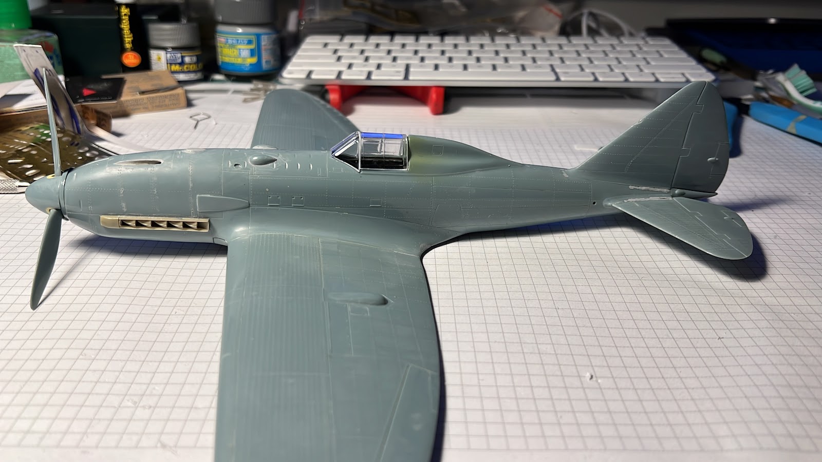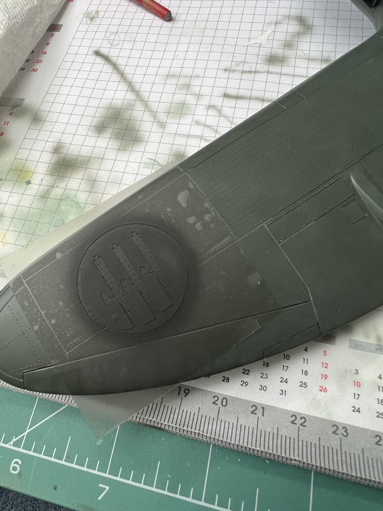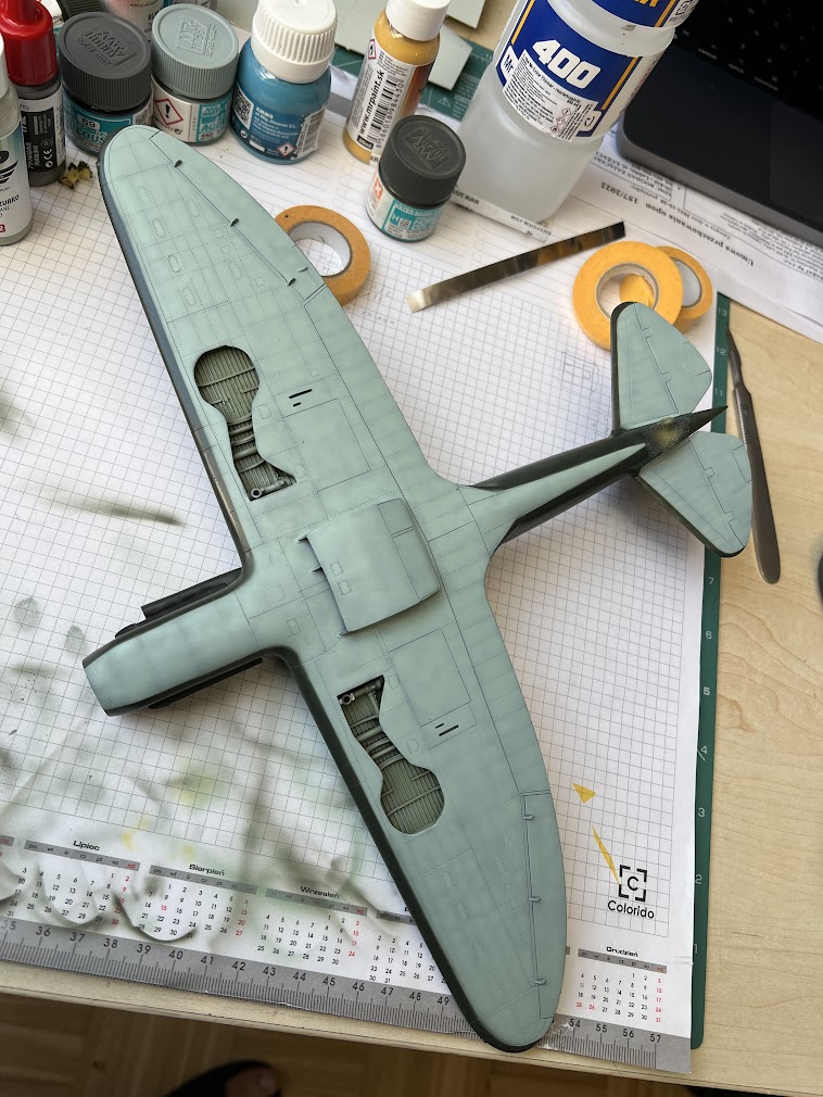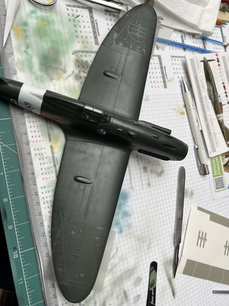 very fine sandpaper and "painted" gently with Tamiya extra thin cement to clean them. Rivets on the fuselage - well... I just left them as they were