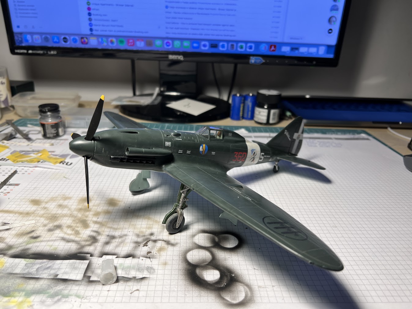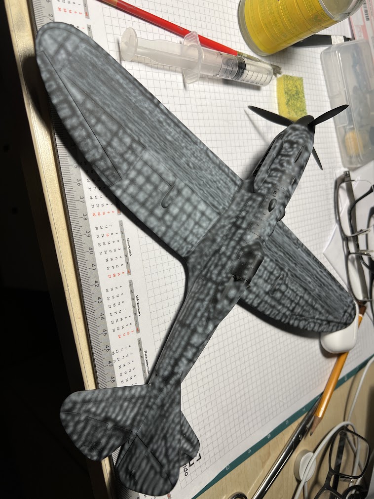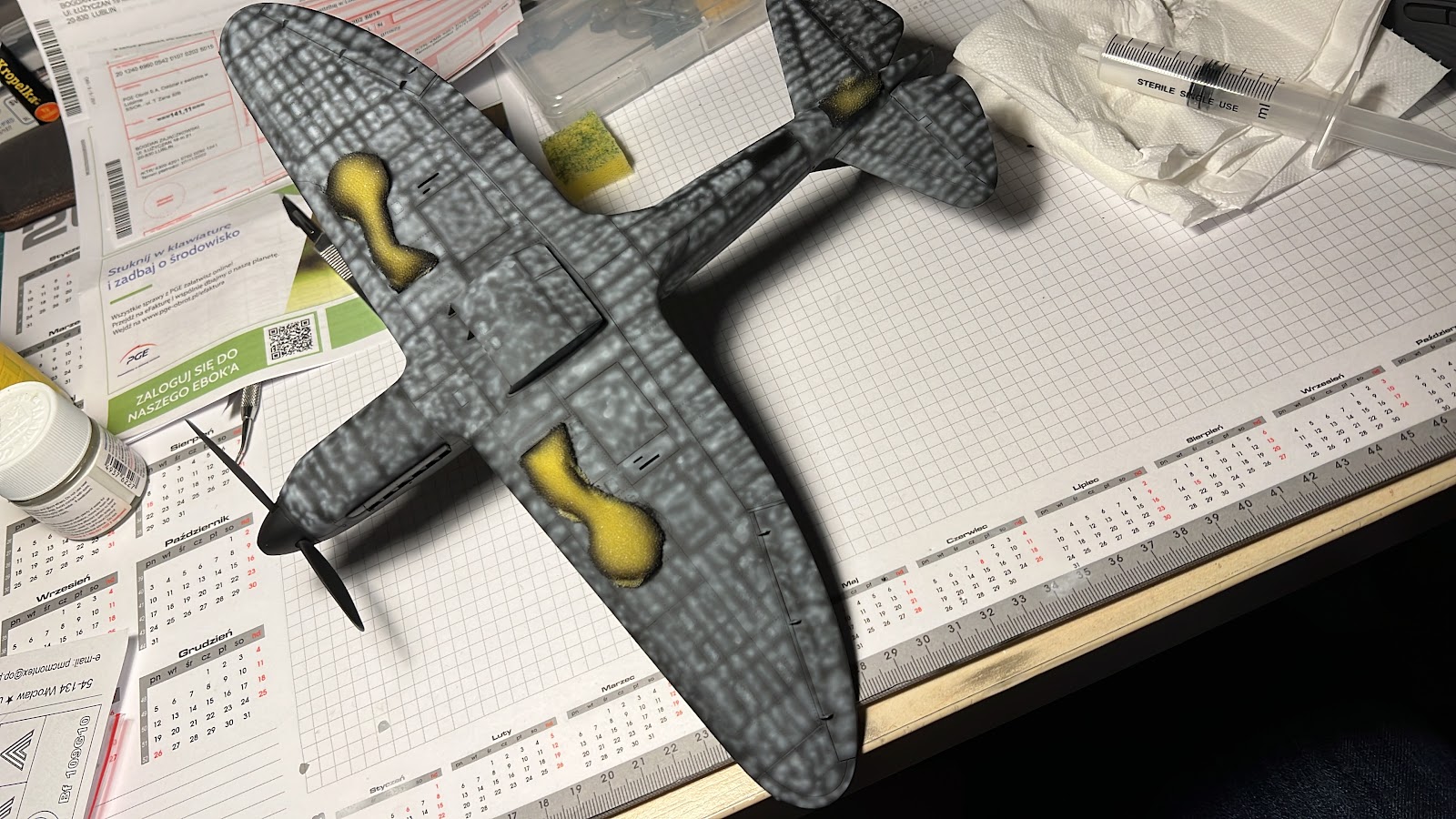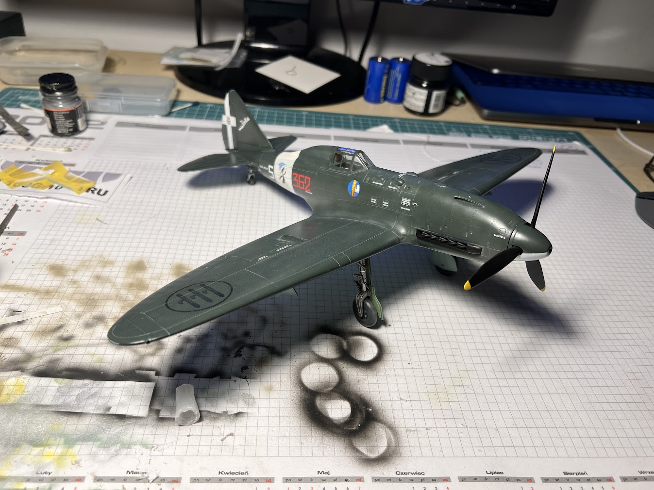 gluing parts together. The wings trailing edges are quite thick and require thinning. The propeller spinner also needed adjustments - the holes