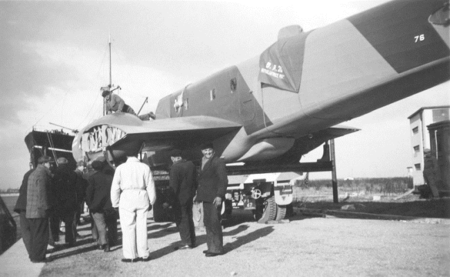 Img. 36 and Img. 37 - A band-camouflaged BR.20 is being shipped to Japan (left)